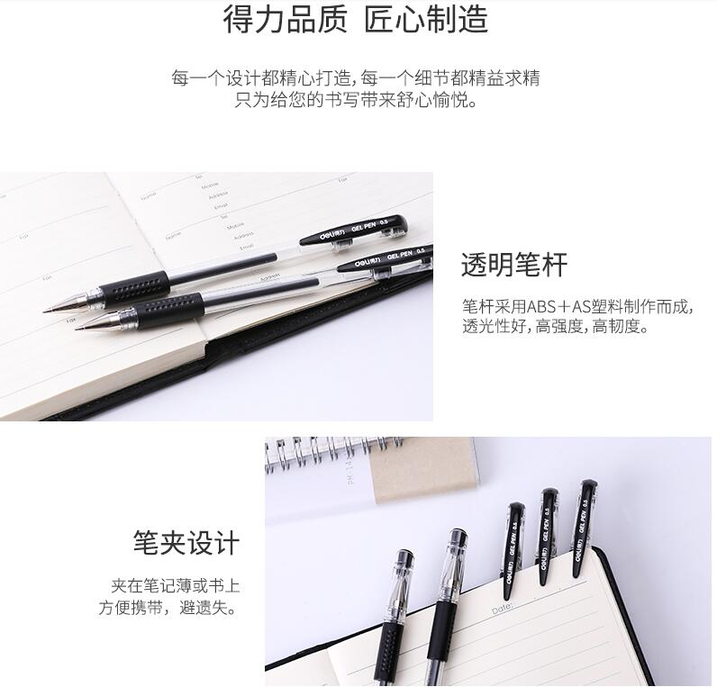 得力文具33140中性筆學(xué)生考試量販式黑筆水筆碳素筆0.5mm辦公用品包郵書寫工具60支裝