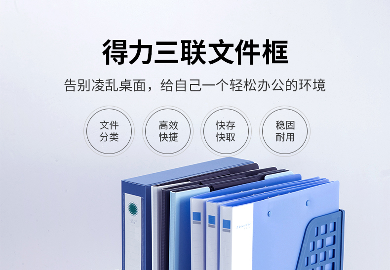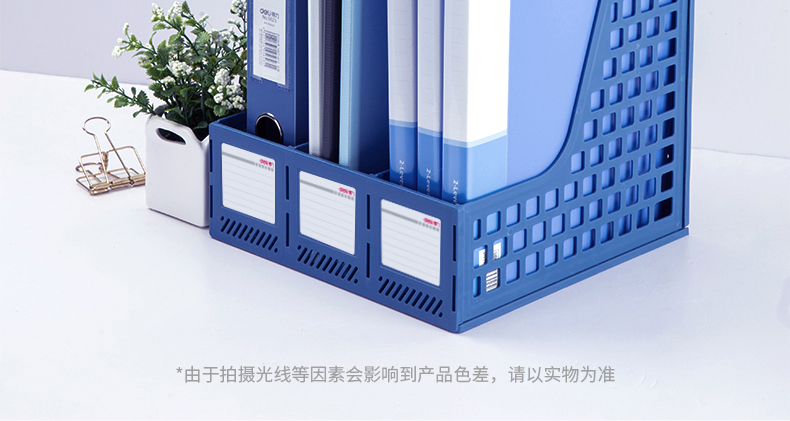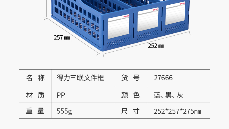 得力(deli)三聯(lián)鏤空桌面文件框 三欄帶標簽穩(wěn)固文件欄/文件筐/資料框 黑色